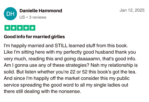 - Practical techniques that work for any woman, whether you're single, taken, heartbroken, or thriving.