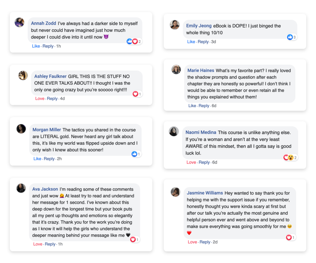 - Instant Access to the entire book that contains everything you will ever need to enter Your DARK FEMININE ERA and Level Up Your Life…