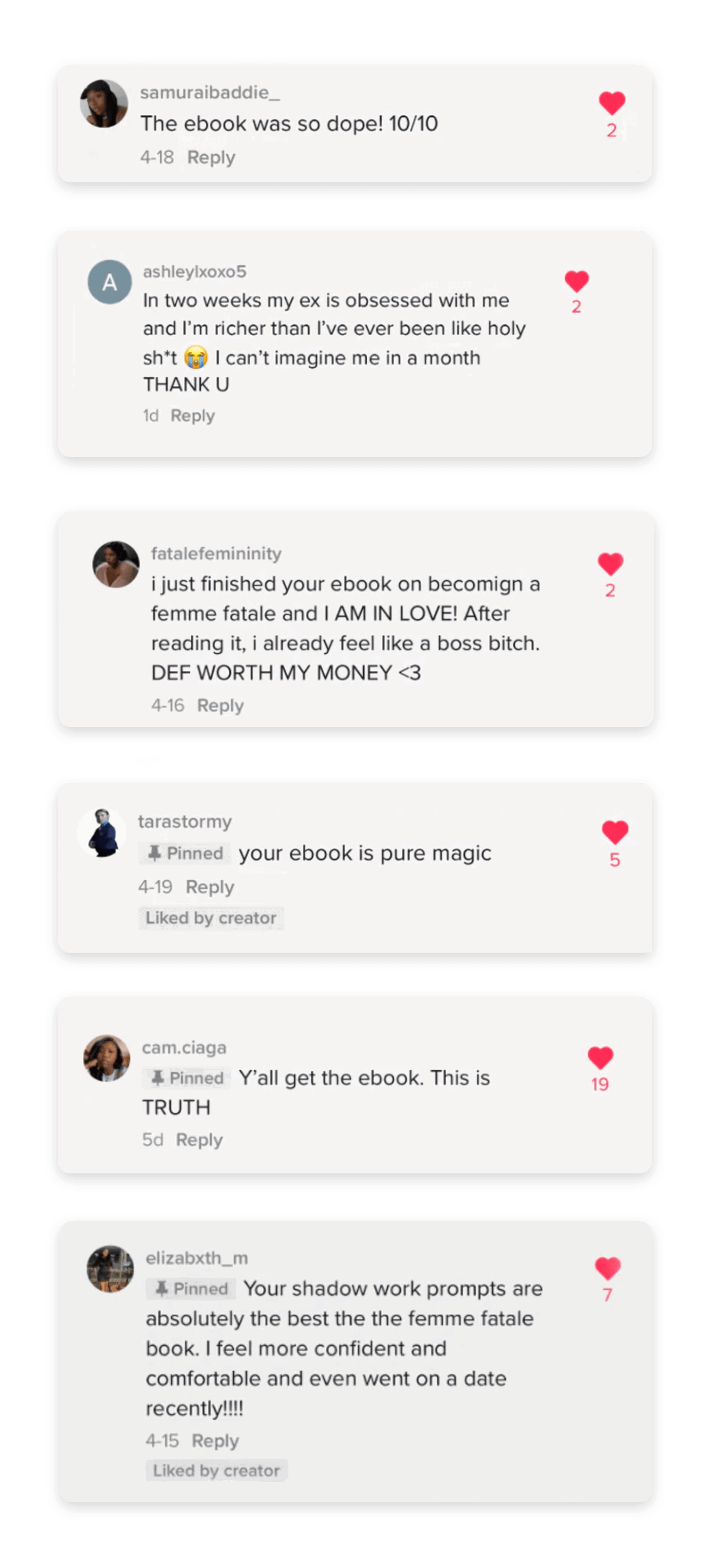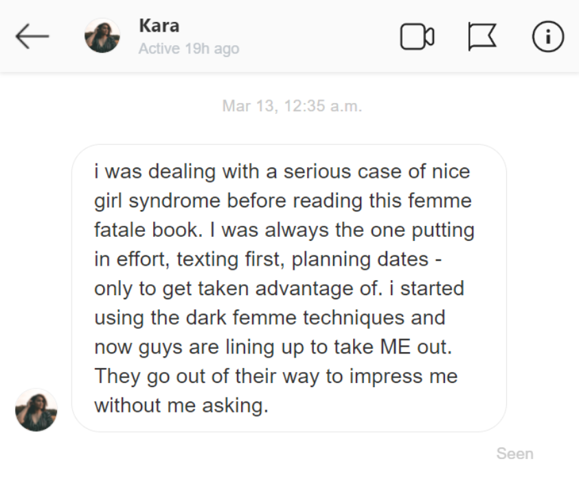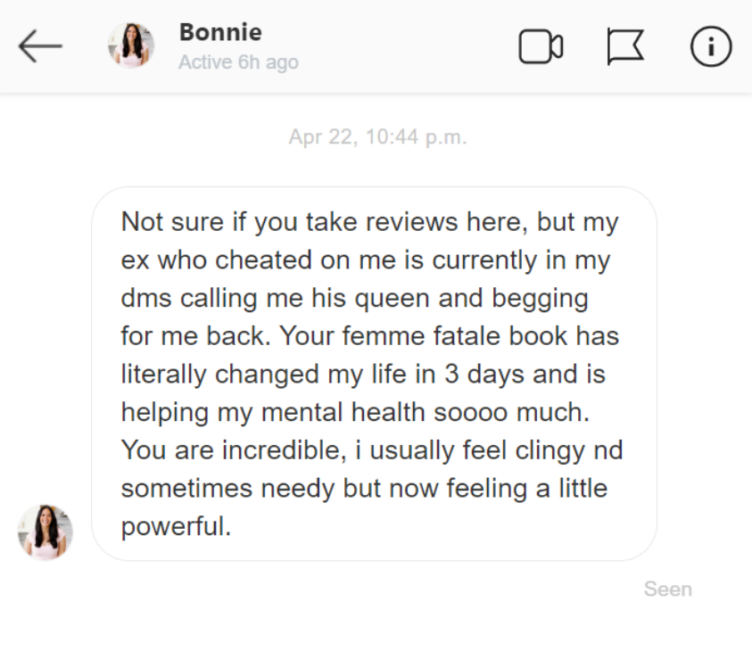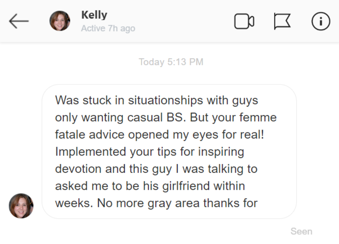 “Was stuck in situationships with guys only wanting casual BS. But your femme fatale advice opened my eyes for real..."